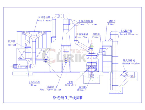 磨粉機生產(chǎn)線通常有錘式破碎機、斗式提升機、儲料倉、震動給料機、微粉磨主機、變頻分級機、雙聯(lián)旋風(fēng)集粉器、脈沖除塵系統(tǒng)、高壓風(fēng)機、空氣壓縮機、電器控制系統(tǒng)等組成。大塊物料經(jīng)錘式破碎機破碎成適合超細磨粉機工作的進料粒度(1cm左右),然后通過調(diào)節(jié)磨粉機分析機的轉(zhuǎn)速,達到適合生產(chǎn)要求的細度,經(jīng)過人工包裝成袋,也可以根據(jù)需要配置自動微粉打包機及選用不同型號的磨粉機。
